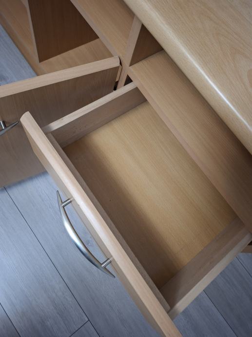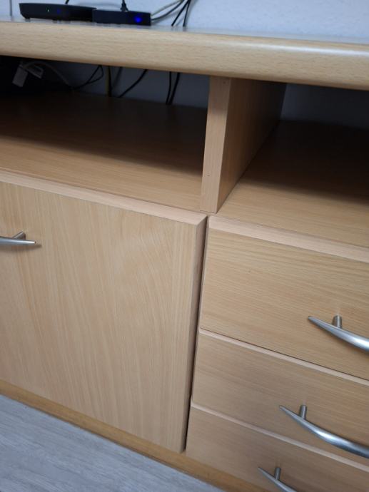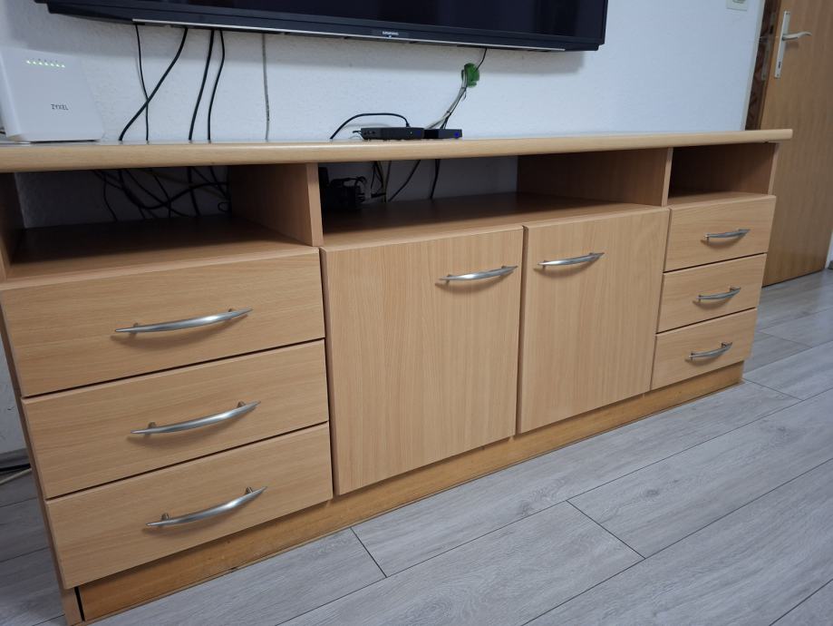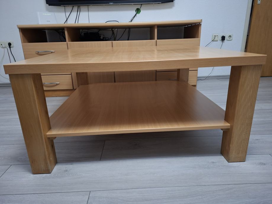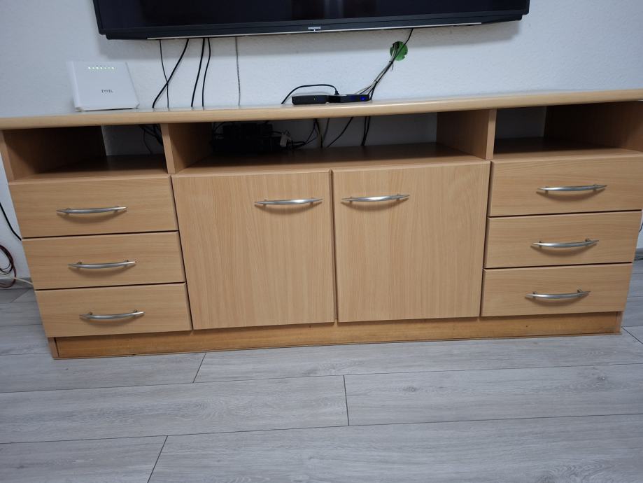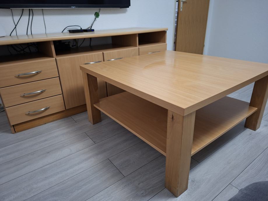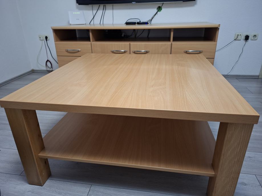 Prodajem komodu 160×60×70 , rađeno po mjeri , djelomično puno drvo i stol za boravak 100×100 .