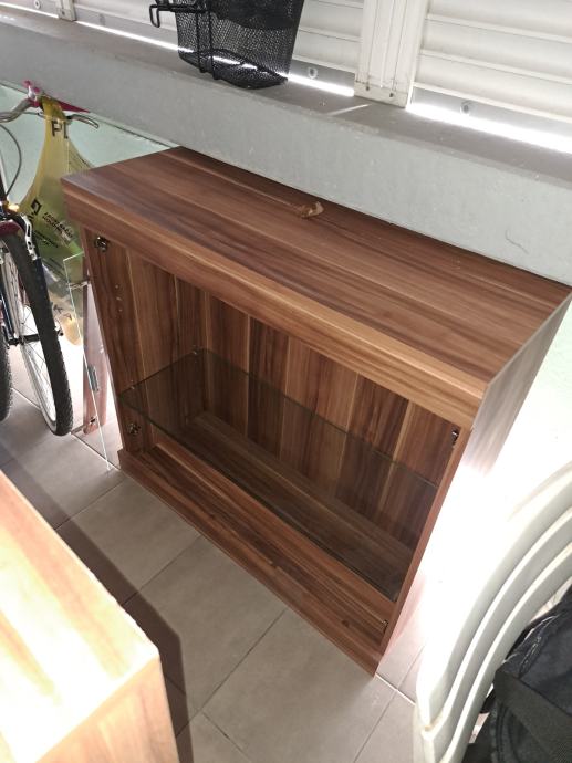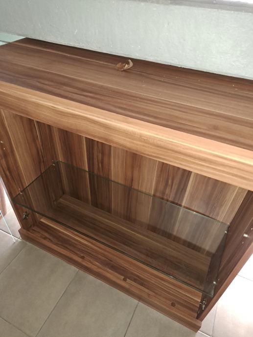 Viseći ormarić dolazi uz komodu i također je u odlicnom stanju. Ima staklena vrata i police. Set se prodaje zajedno.