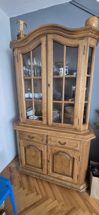 Prodajem očuvanu drvenu vitrinu sa staklenim vratima i donjim ormarićima. Kvalitetna, masivna izrada — idealna za trpezariju, dnevni boravak ili kuhinju. Pogodna za izlaganje čaša, servisa, knjiga, suvenira i slično.