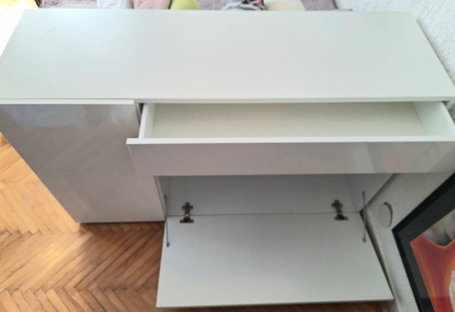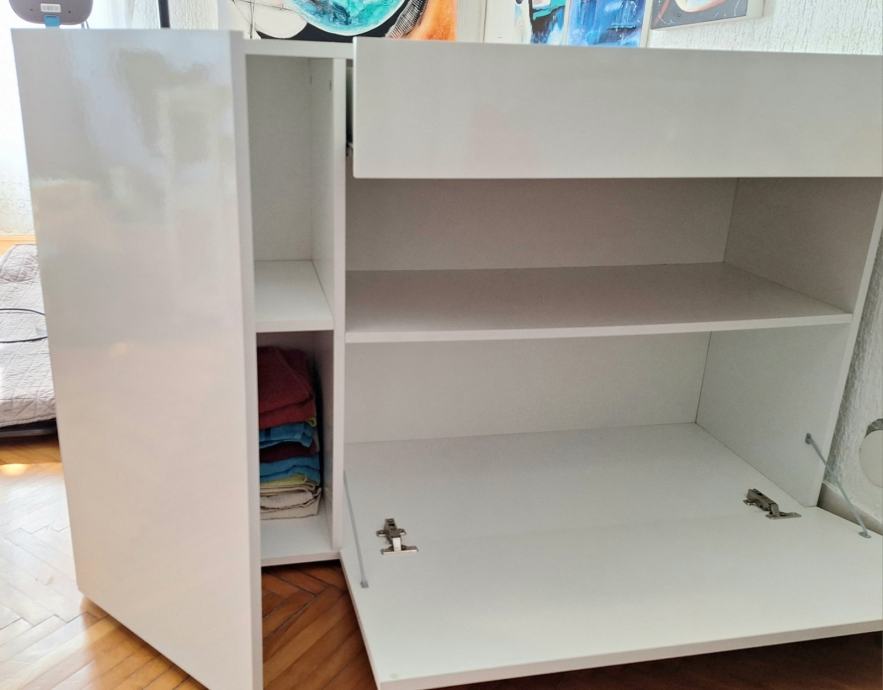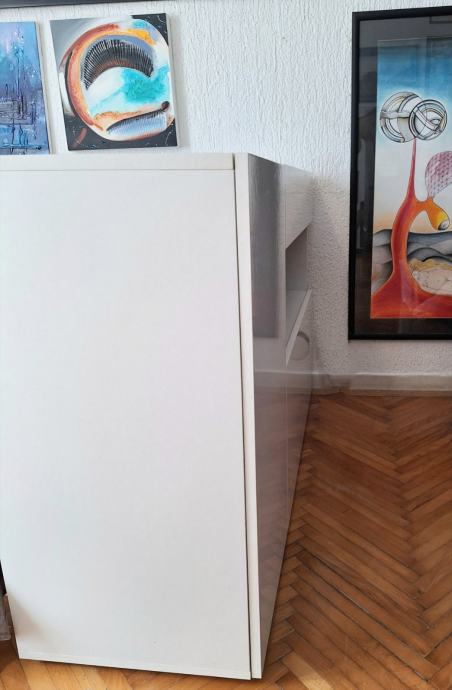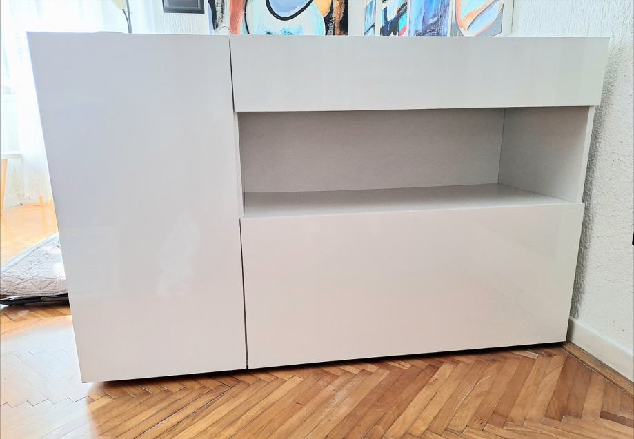 Moderan, minimalistički bijeli lakirani ormarić za dnevni boravak.