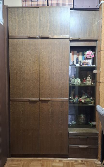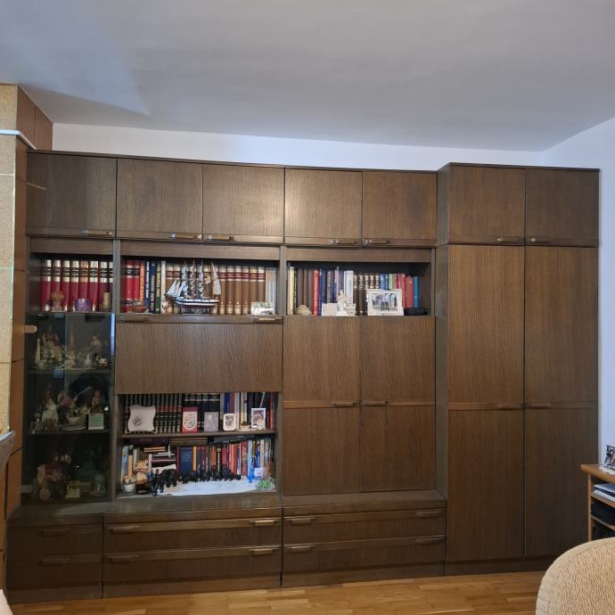 Prodajem regal za dnevni boravak vel. 450 cm x 230 cm x 60 cm i (45 cm) . regal ima dvije modularne širine 90 cm i 45 cm to jest 4 x 90 cm + 2 x 45 cm, Može ga se složiti na više načina , Kod mene je složen u dva dijela , 135x230x60 i 315x230x60, Regal demontira i odvozi kupac,