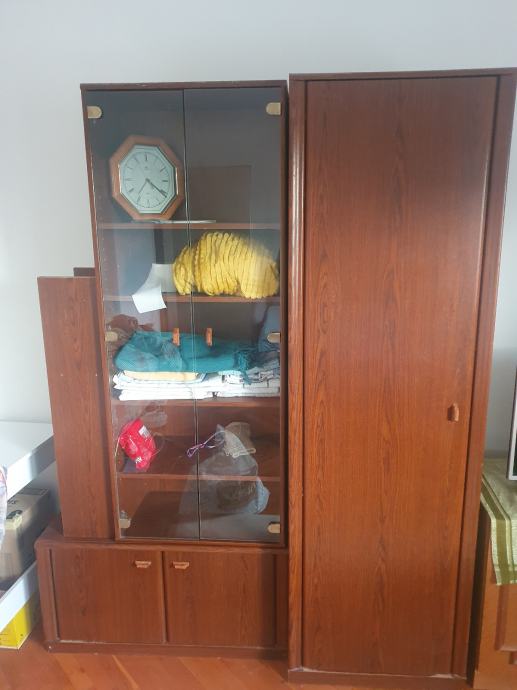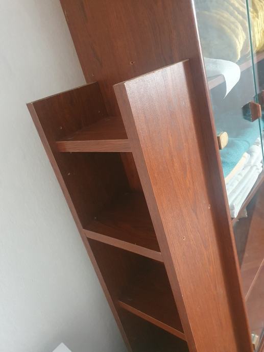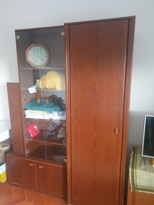 Prodajem regal koji se sastoji od polica za knjige, staklenog djela, male komode i jednkrilnog ormara.
