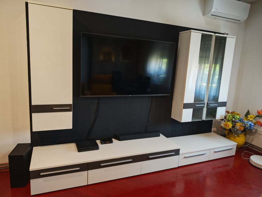 Bijeli (visoki sjaj) sa tamno sivim manjim elementima.