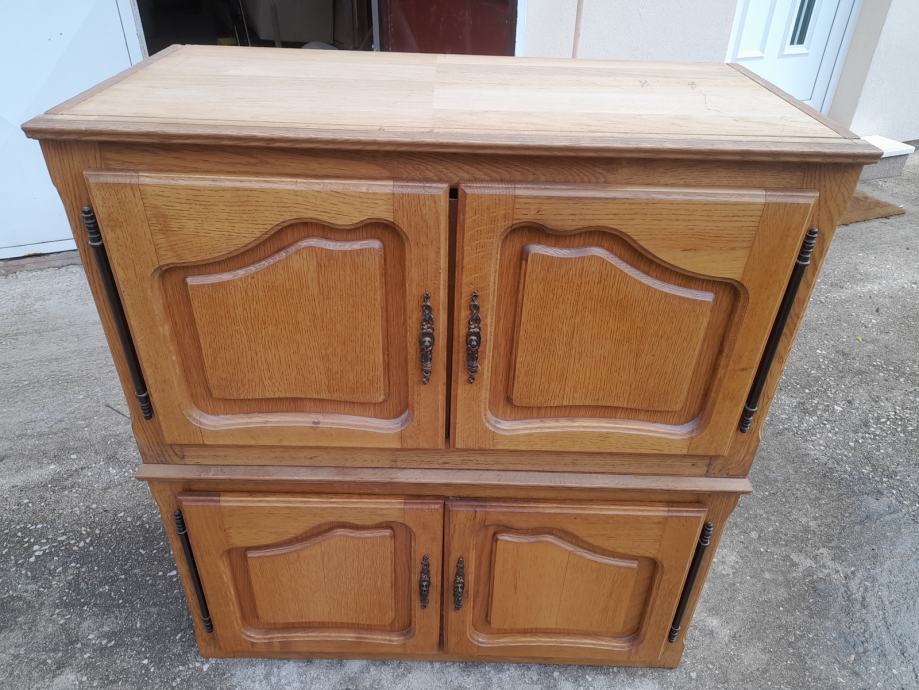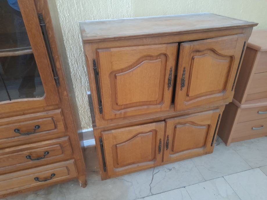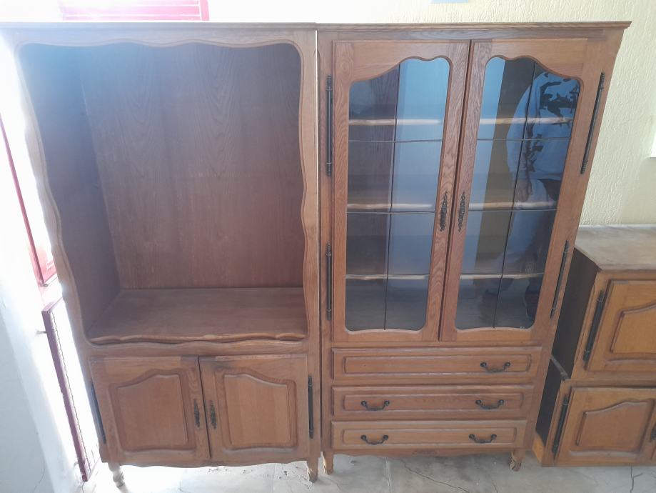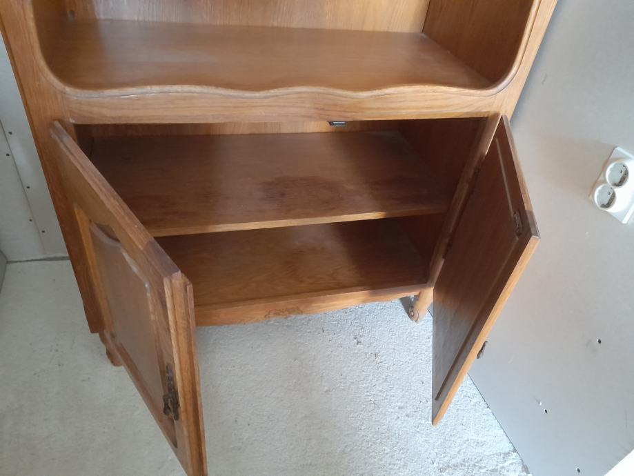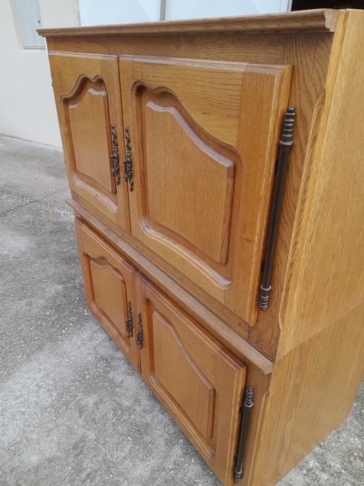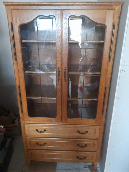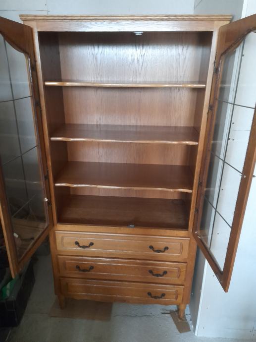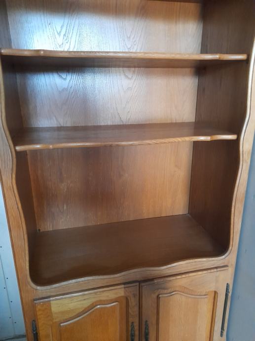 Prodajem kvalitetan srarinski regal dužine cca 182 širine cca 45 cm, visine cca 230 cm za 250 Eura. Može se kupit svaki od elemenata odvojeno. Sastoji se od dva veća elementa, 91 × 45 x 180 cm (Element s policama je prodan, ostao je element sa staklenom vitrinom, 200 Eura) i dva manja elementa dužine cca 91 cm, širine 46 cm, visine cca 50 (60 Eura po elementu). Total cijena za sve skupa 220 Eura. Dostava za Split I bližu okolicu besplatna.
