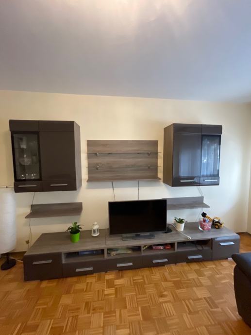 Lakirani regal za dnevni boravak u dobrom stanju.