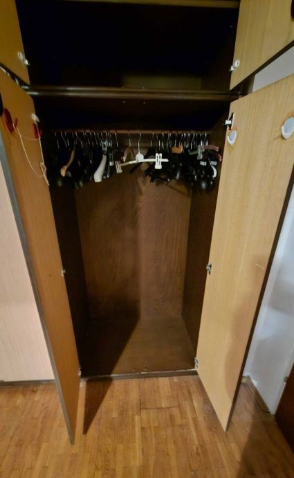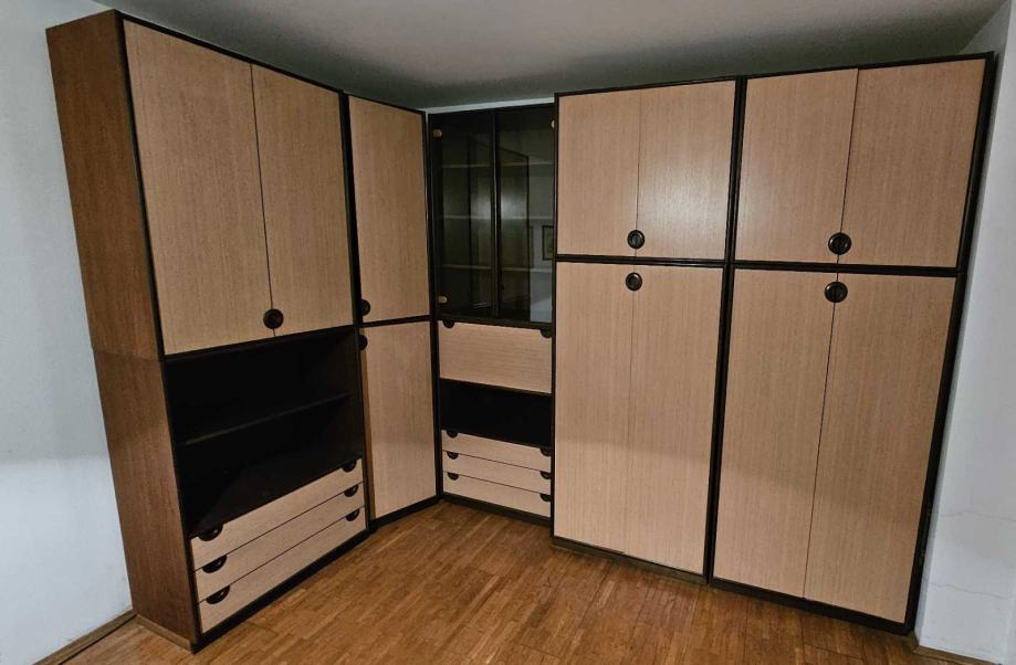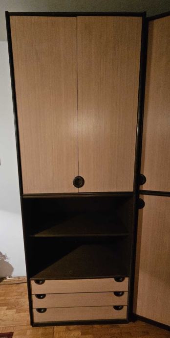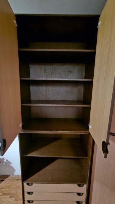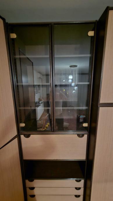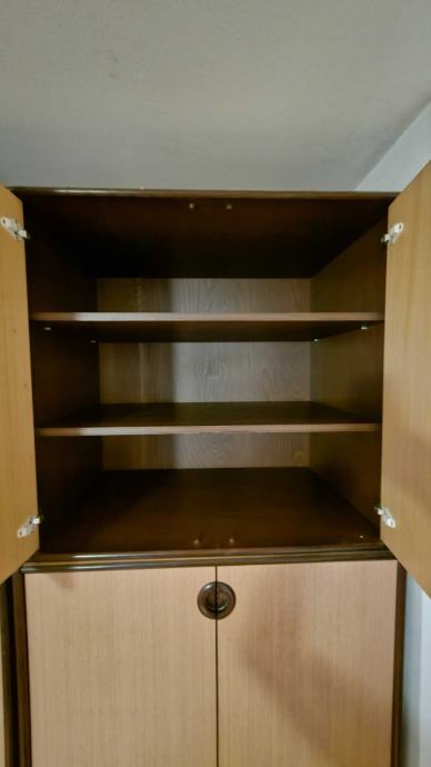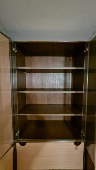 Unutrašnjost je u boji tamnog hrasta, osim ladica koje su unutra bijele.