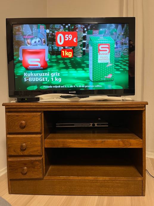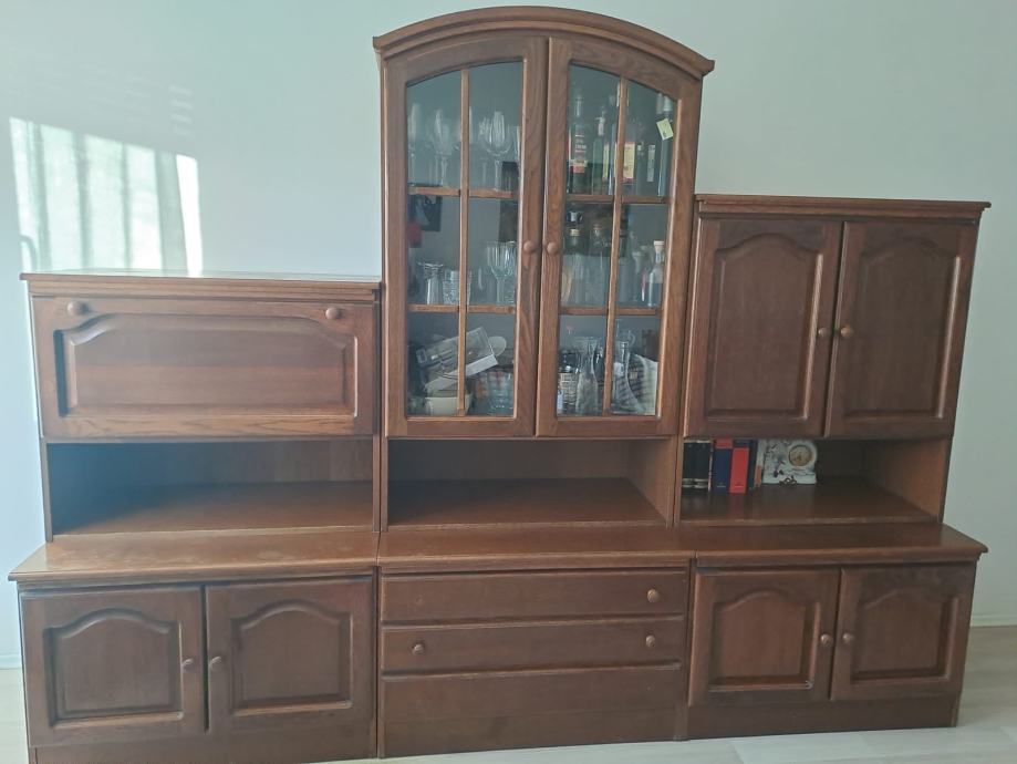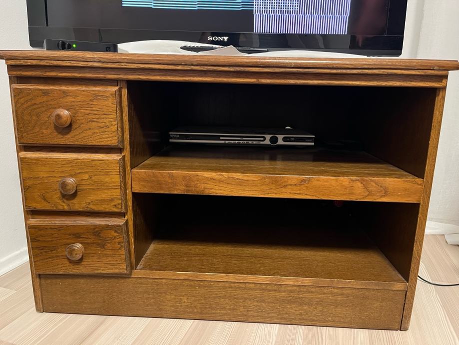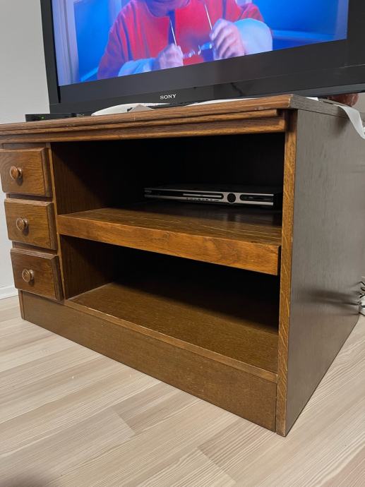 Uz regal dolazi i TV ormarić od hrasta, puno drvo. Dobro očuvan.