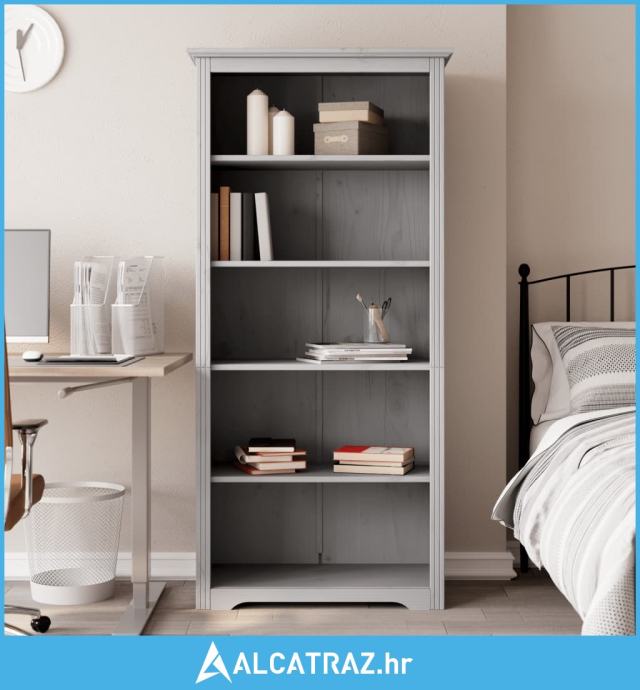 Regal za knjige BODO sivi 82x40x173 cm od masivne borovine - NOVO