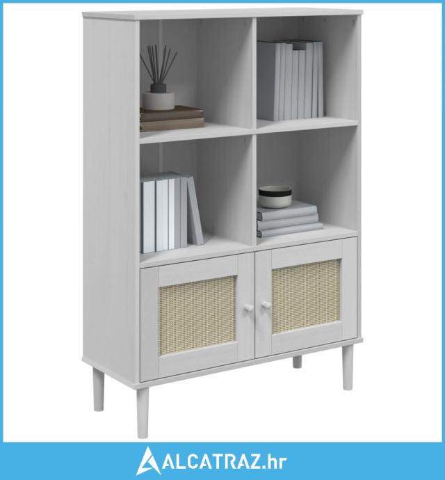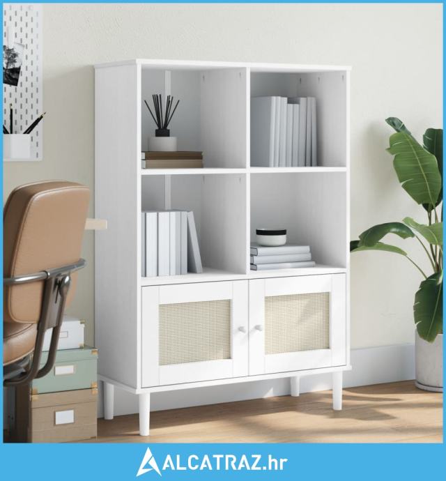 Regal za knjige SENJA izgled ratana bijeli 90x35x130cm borovina - NOVO