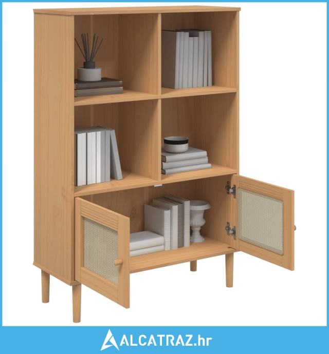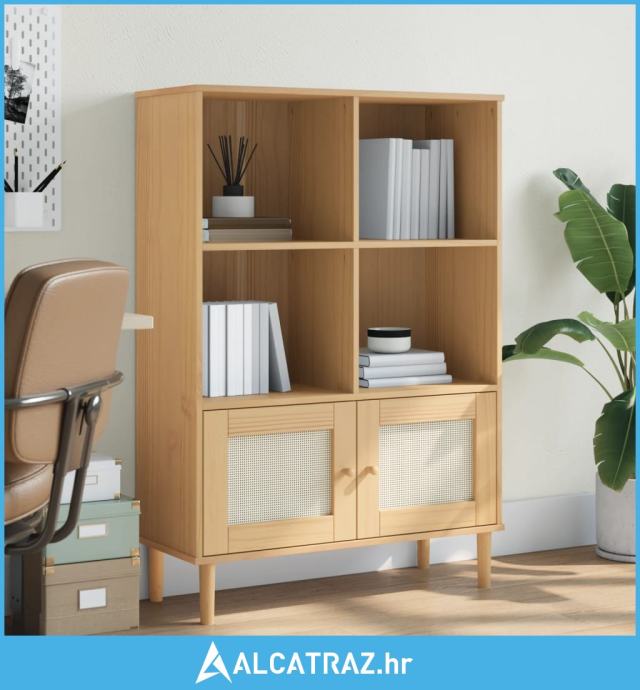 Regal za knjige SENJA izgled ratana smeđi 90x35x130 cm borovina - NOVO