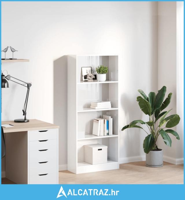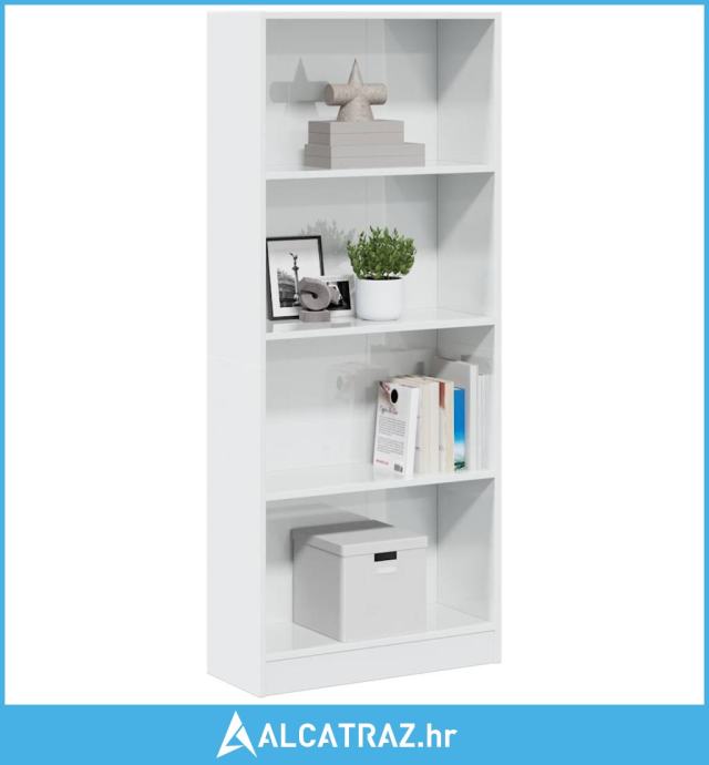 Regal za knjige sjajni bijeli 60x24x143 cm konstruirano drvo - NOVO