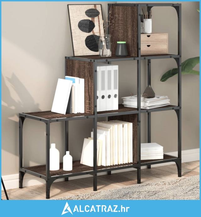 Regal za knjige smeđa boja hrasta 92x30x102 cm od drva i metala - NOVO