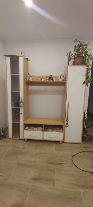 Prodajem polovni dobro očuvani regal za dnevni boravak ukupne dužine 172, visina 190/170,dužina mosta između ormarića 91.5, širina 35 cm i mali ormarić za televizor 91.5 dužina,širina 43 i visina 46.5 cm
