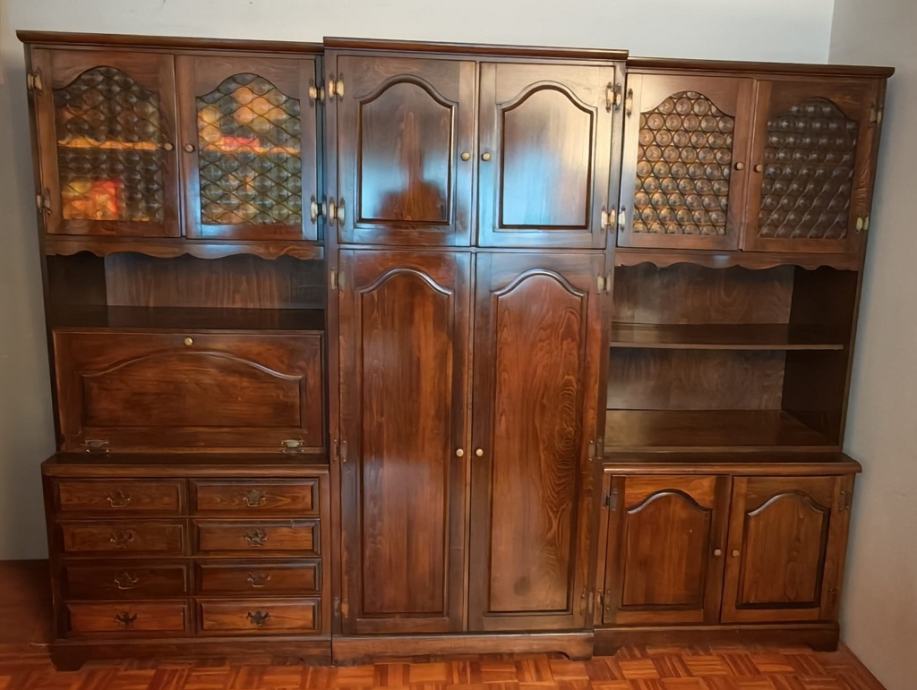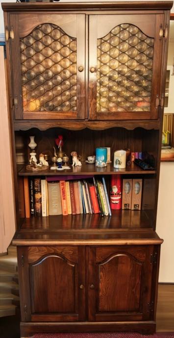 Prodajem stari regal od punog drva u četiri dijela dimenzija: širina 90 cm; visina 203 cm; dubina 58 cm.