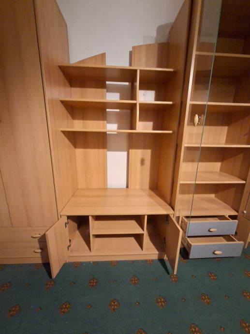 Sastoji se od ormara (lijevo), TV dijela, otvorenih polica, vitrine i komode u jednom sklopu.