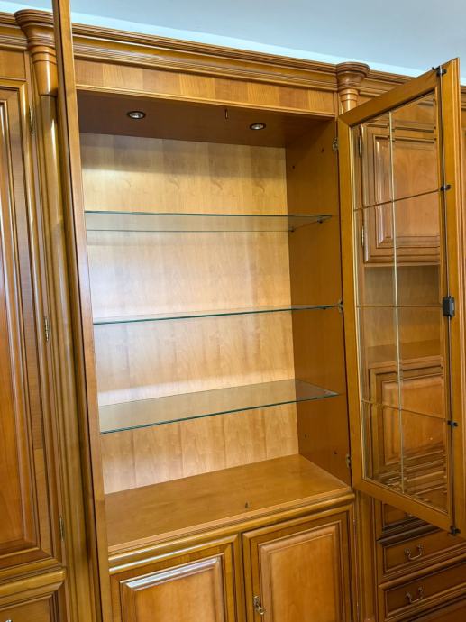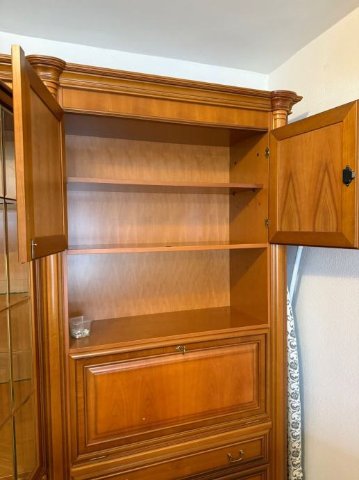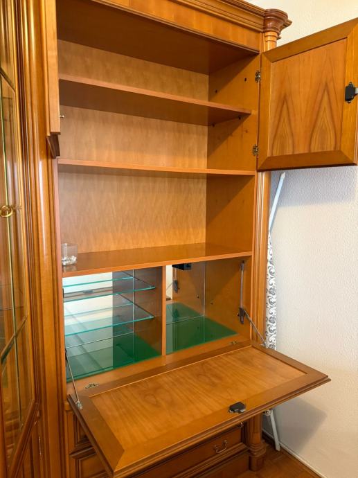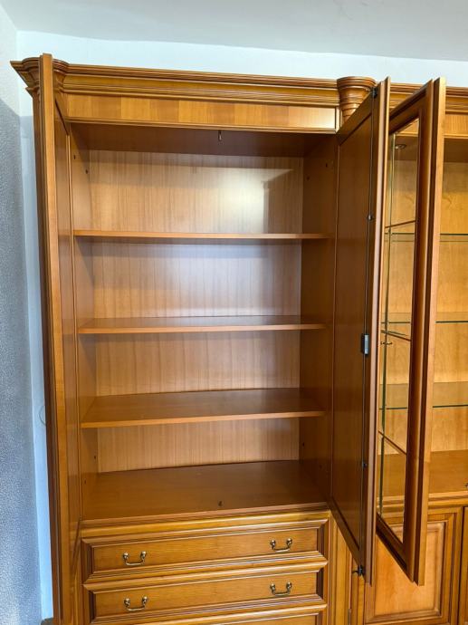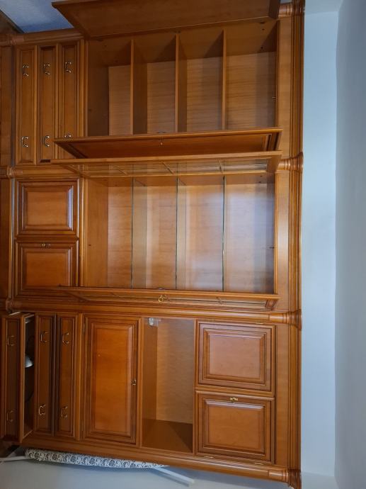 Prodajem regal od punog drveta, jako očuvan i kvalitetne izrade. Bez većih oštećenja, stabilan i uredan, s puno prostora za pohranu i staklenim policama.