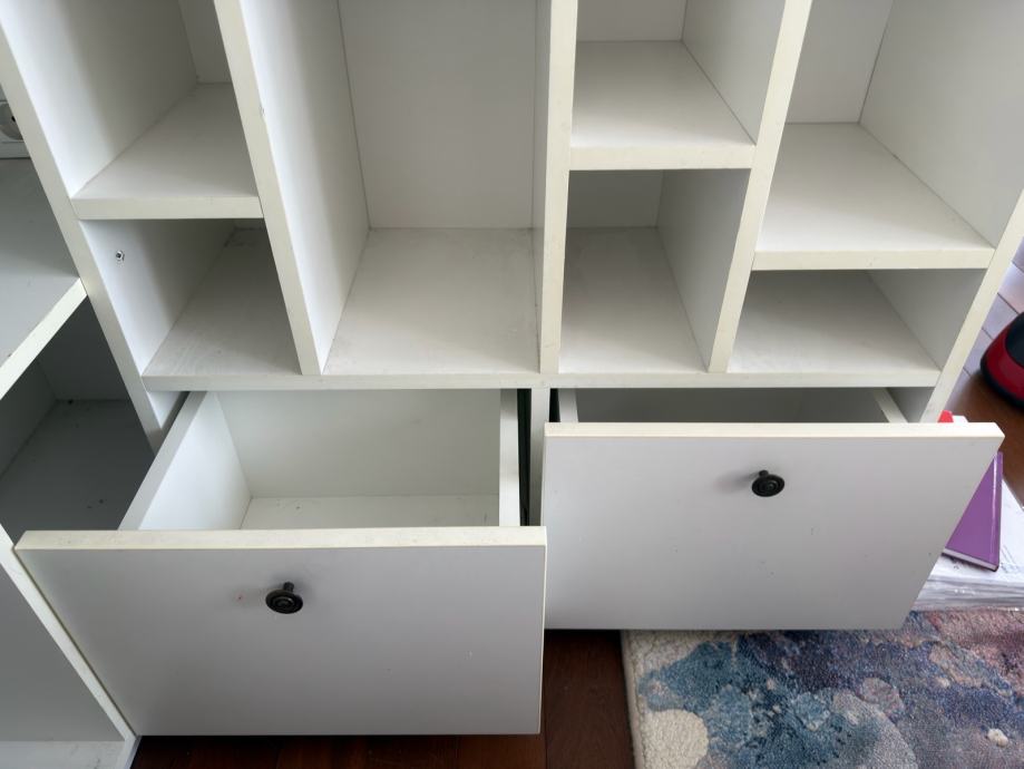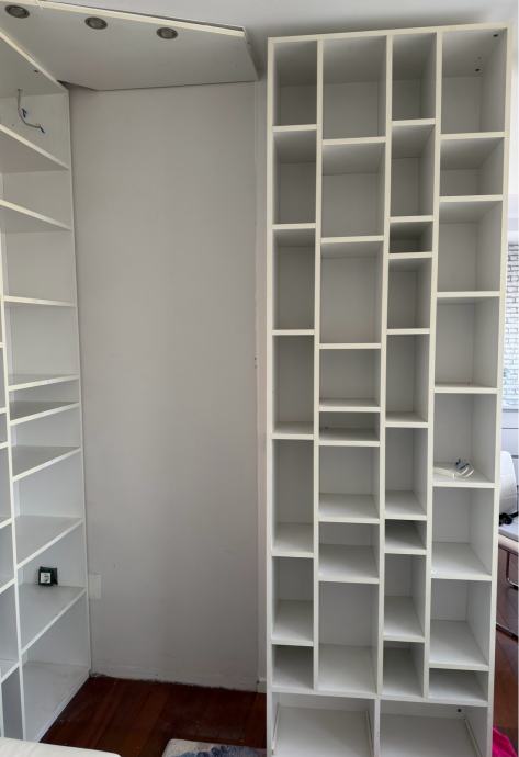 Prodajem 2 regala visine 258 cm, širina desnog je 79 cm i dubine 31 cm, drugi širina 65 cm.