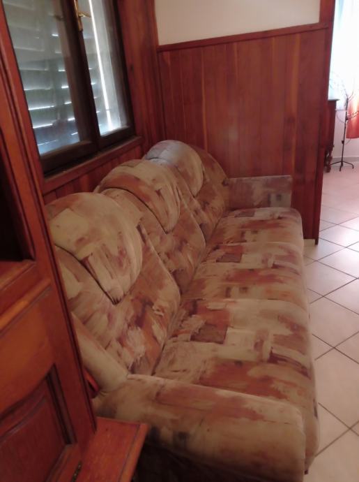 Regal od punog drveta,hrast.D230V210Š55DONJI DIO 50 GORNJI DIO.CIJENA50E.PRODAJEM TROSJED NA RAZVLAČENJE,DVOSJED I FOTELJU.D220XŠ90.RAZVUČEN120X200.D150Š90 ,D90 Š90.Sve u jako dobrom stanju.CIJENA 50E.ILI SVE ZA 80.NALAZI SE U GLINI.098-161-4533