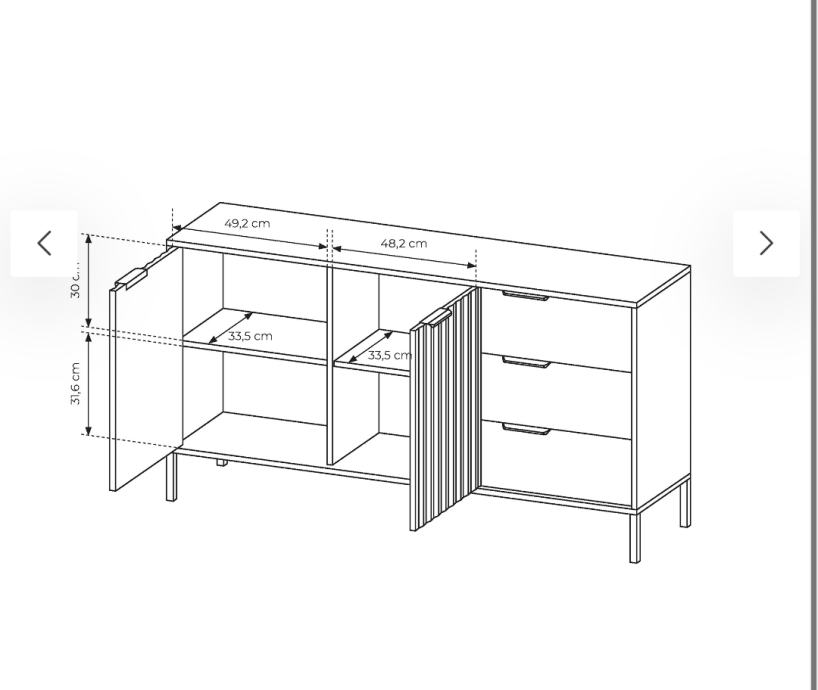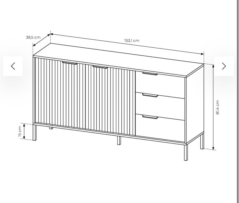 Ima lijepe visoke nogice te ladice i police kao na skici....