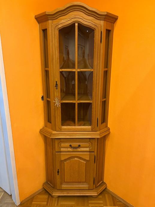 Prodajem set namještaja koji se sastoji od kutnog ormara, visećeg ormara i komode. Radi se o klasičnom, rustikalnom stilu izrade od drveta tople, medene boje.