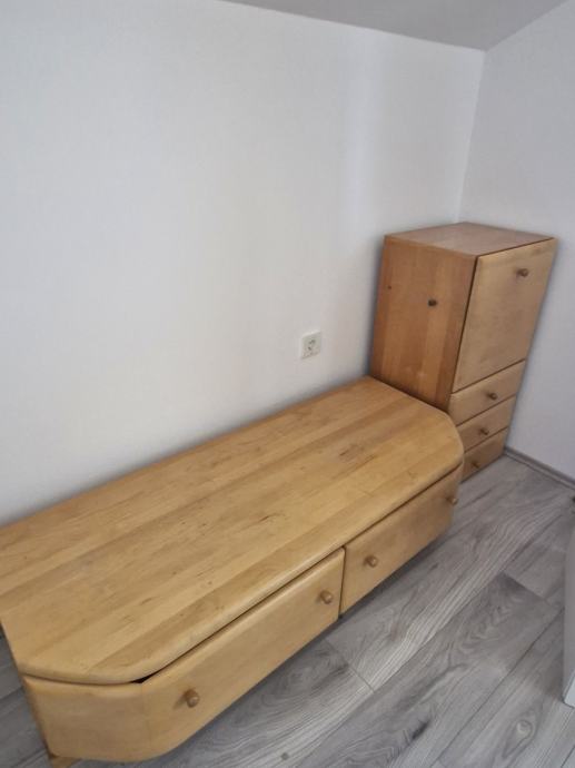 Prodajem set kvalitetnog drvenog namještaja – izrađen od masivnog mekog drva, u odličnom stanju, rabljeno, ali očuvano i čvrsto. Komplet uključuje: