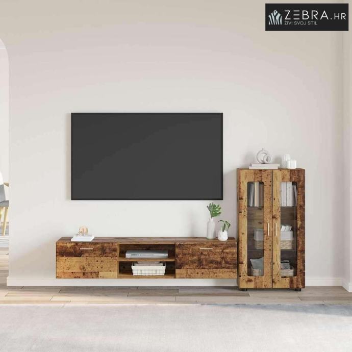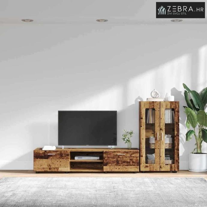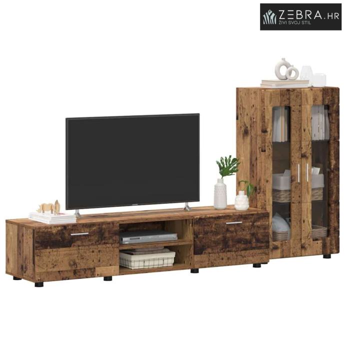 Set TV komoda s ladicama s policom Staro drvo Konstruirano drvo