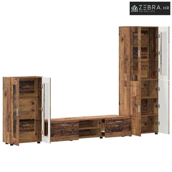 Set TV komoda s ladicama s policom Staro drvo Konstruirano drvo