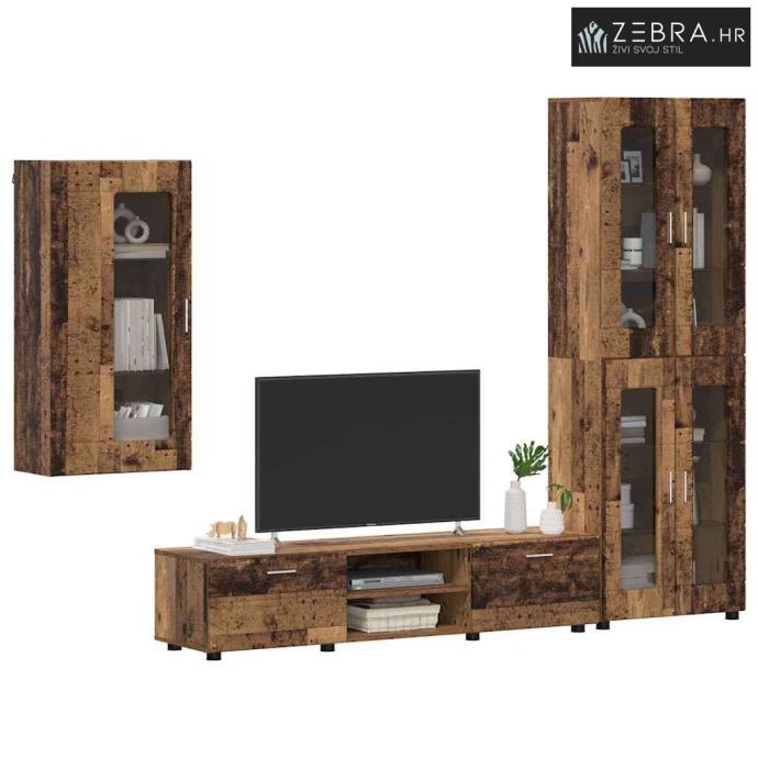 Set TV komoda s ladicama s policom Staro drvo Konstruirano drvo