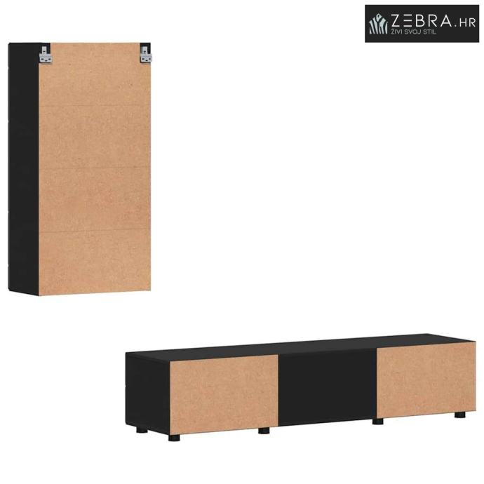 Set TV komoda s ladicama s policom Zidne Crna Konstruirano drvo