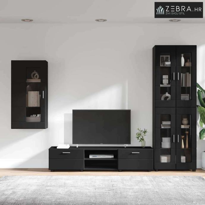 Set TV komoda s ladicama s policom Zidne Crna Konstruirano drvo