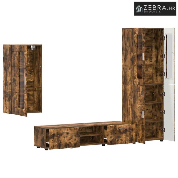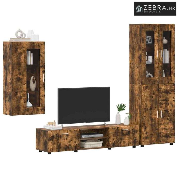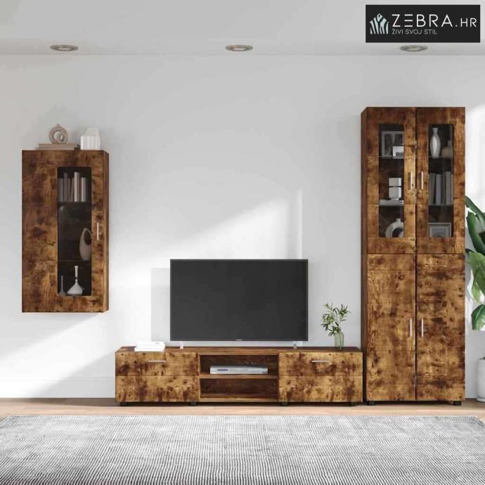Set TV komoda s ladicama Zidne Dimljeni hrast Konstruirano drvo