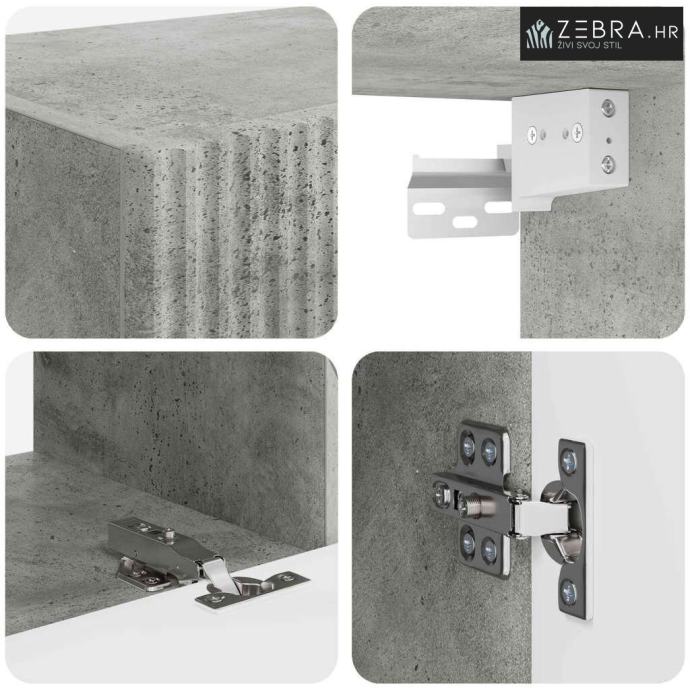 Robusno konstruirano drvo: Izrađeno od visokokvalitetnog konstruiranog drva, poznatog po svojoj snazi i otpornosti. Ovaj materijal osigurava stabilnost ormarića, čak i kada je opterećen težim predmetima. Trajnost konstruiranog drva čini ga savršenim izborom uz moderan izgled primjeren raznim dekorima.