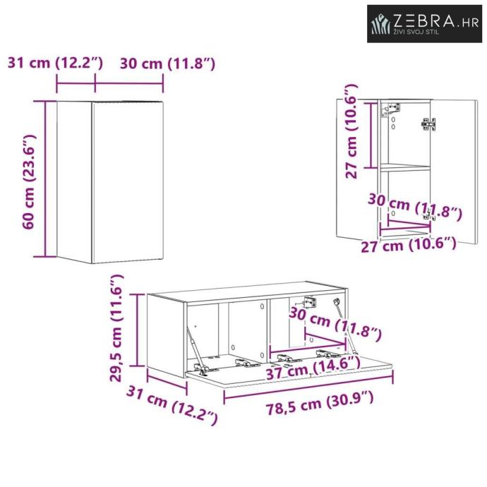 1 x Zidni ormar: 78,5 x 31 x 30 cm (DšVš)