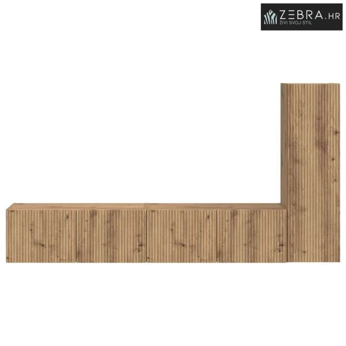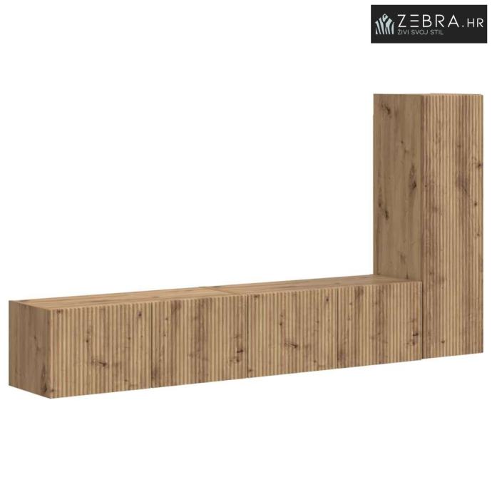 Ovaj TV kabinet je središnji komad, donoseći modernu izradu i jednostavne, čiste linije. Odlično se uklapa u suvremene interijere, obogaćujući svaki dnevni boravak svojom jednostavnom estetikom dok pruža praktična rješenja za pohranu. Izrađen od konstruiranog drveta, kvalificira se kao savršena kombinacija funkcionalnosti i stila, nudeći korisnicima vizualno privlačan i funkcionalan namještaj. Ovaj set je napravljen da odgovara raznim prostorima, stvarajući harmoničnu atmosferu u svakom domu.
