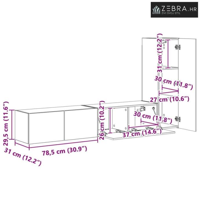1 x Zidna ormar: 78,5 x 31 x 30 cm (DxŠxV)