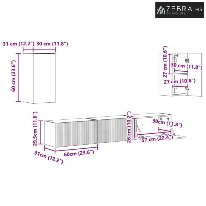2 x Zidni ormar: 60 x 31 x 29,5 cm (DxŠxV)