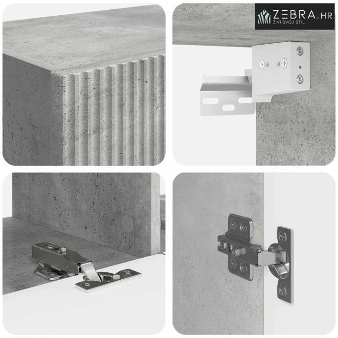 Osobine / funkcija / dizajn: Moderni dizajn naglašava funkcionalnost, s svakom komponentom prilagođenom za jednostavnu upotrebu. Set može smjestiti televizore, igre i medijske dodatke. Njegov minimalistički stil osigurava da se kabinetski savršeno uklapaju u svaki raspored, dok zidna montaža omogućava fleksibilnost raznih aranžmana.