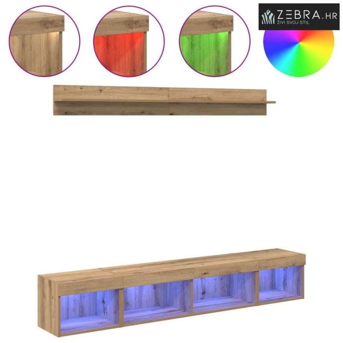 LED trake: Ugrađene LED trake dodaju višefunkcionalno osvjetljenje koje poboljšava atmosferu i ističe dekor. Ova svjetla se napajaju putem USB-a, što ih čini energetski učinkovitim i jednostavnim za povezivanje. Prilagodite intenzitet svjetlosti prema raspoloženju ili stvorite super vizualni fokus u svom dnevnom boravku.