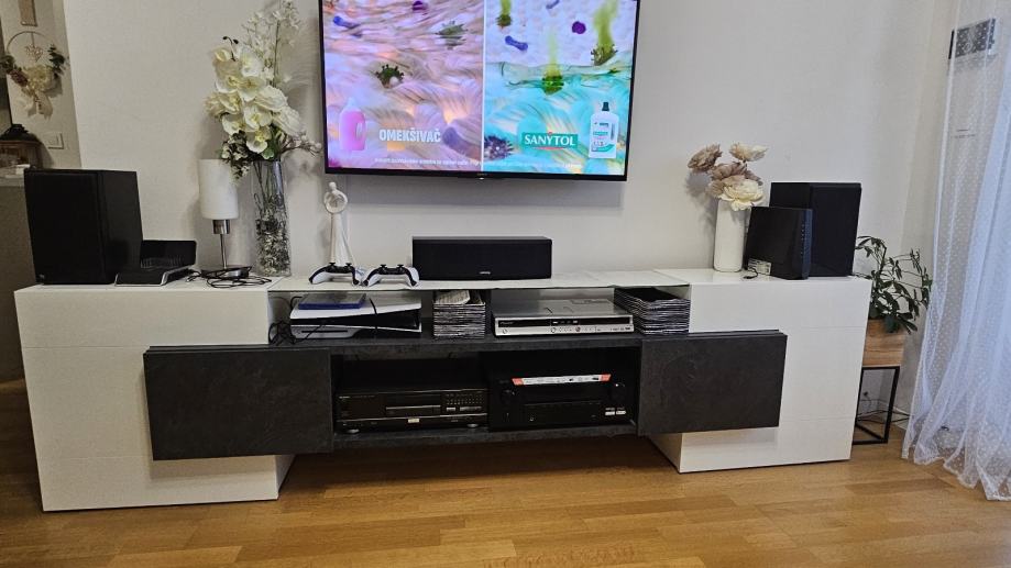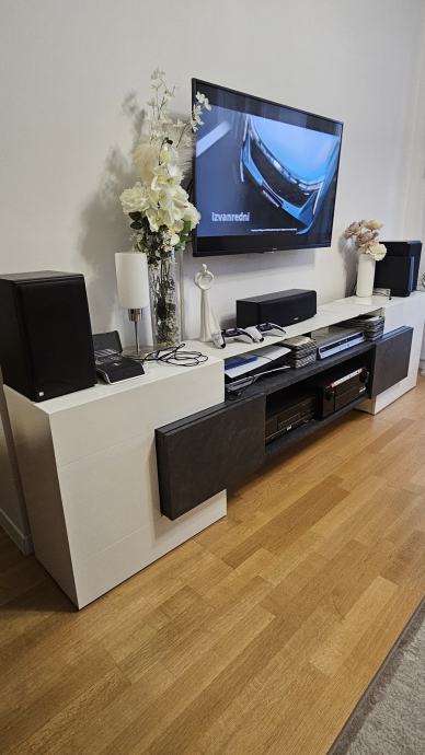 TV stalak u kombinaciji bijele boje i boje cementa, bijela visoki sjaj - ko novo !