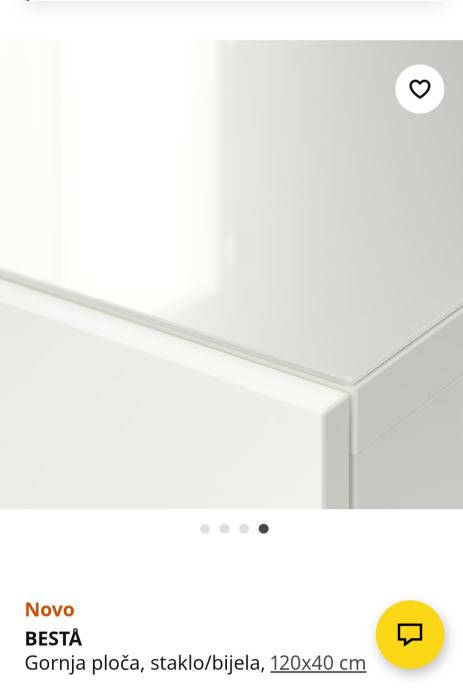 Prodajem 3 kom. mliječno bijelog stakla dim. 120x40 za regal BESTA od IKEA-e. Slika je sa IKEA-ine stranice. Dimenzija je za 1 element. Razlog prodaje je promjena boje stakla.