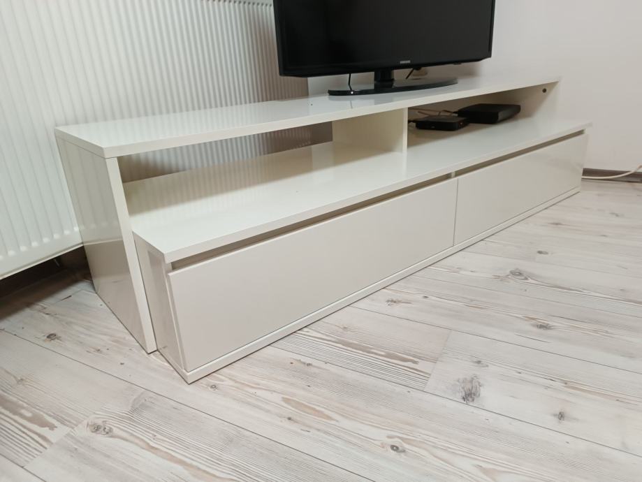 TV klupa, bijela, dvije ladice.
