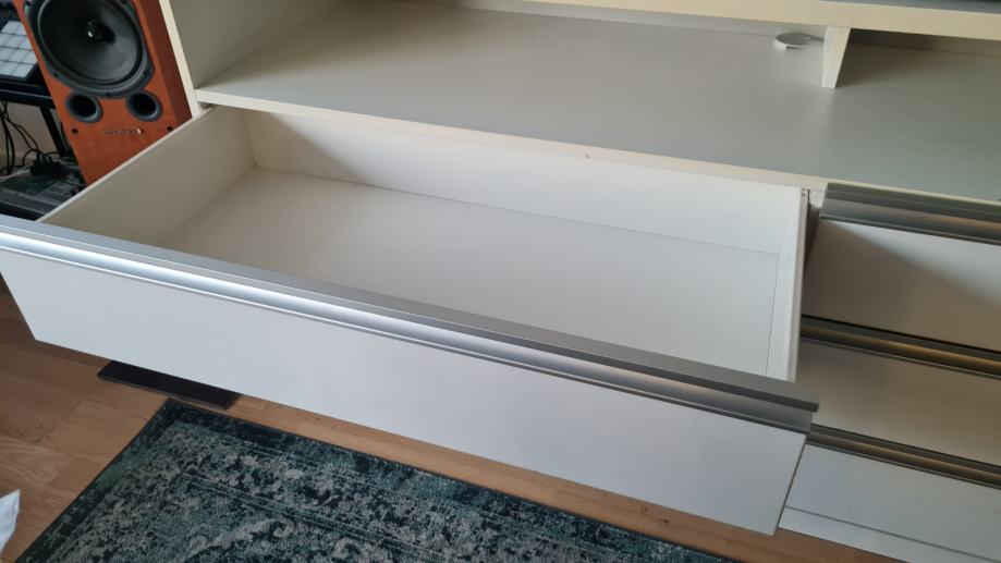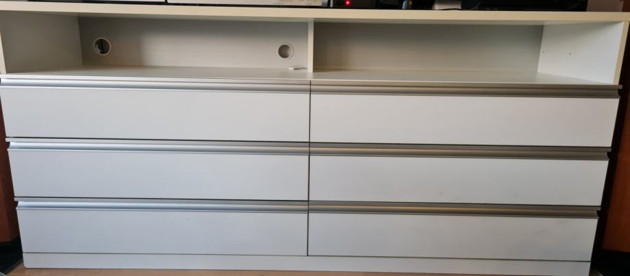 Vrlo kvalitetna i praktična komoda za dnevni boravak, sa 6 velikih ladica, te dva odjeljka za odlaganje, npr. hi fi komponenti ili sl.