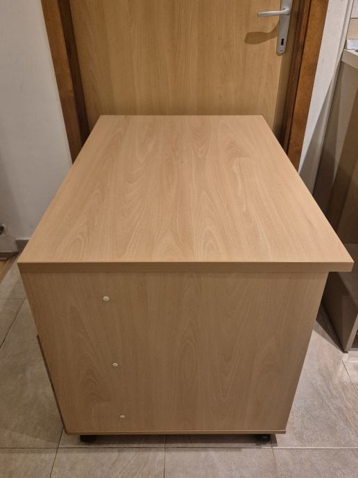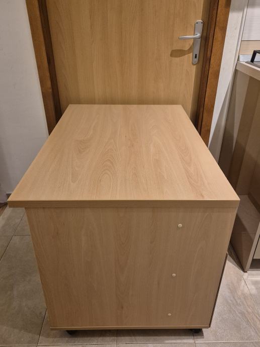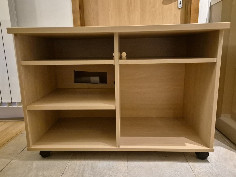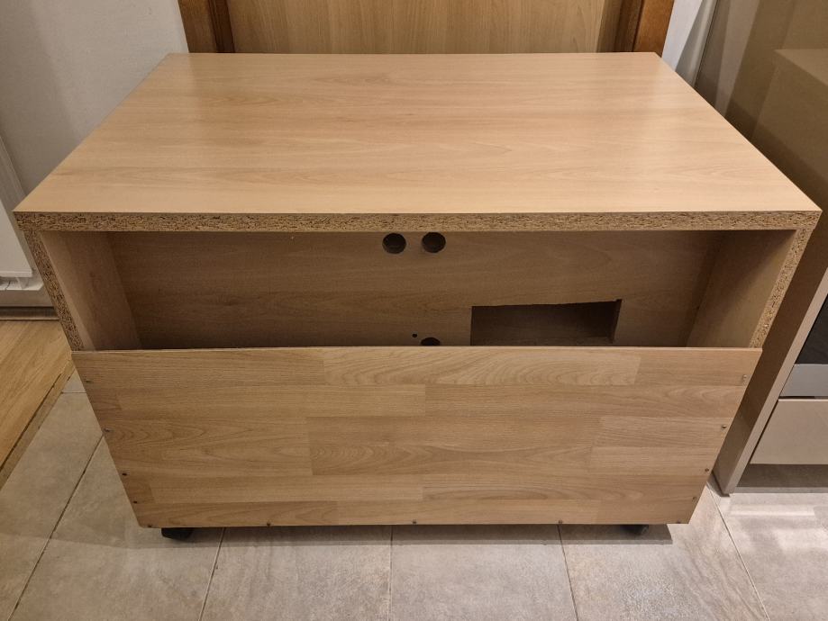 Izrađena po narudžbi, boja bukva, na 4 kotača, sa odjeljkom za kablove (zanja slika).