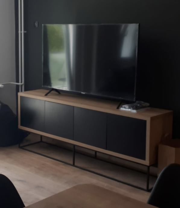 Prodajem komodu za TV, kupljena u Emmezeti, hrast sa crnim vratima. Komoda ima i metalni stalak koji možete koristiti, ali i ne morate. U odlicnom stanju, bez vidljivih oštećenja.