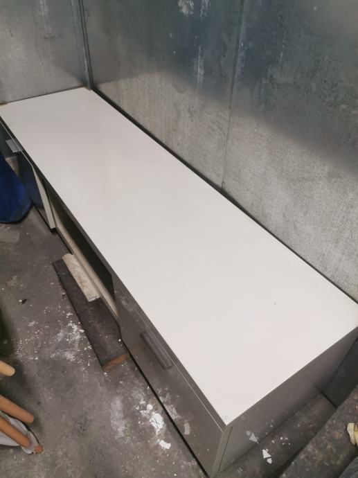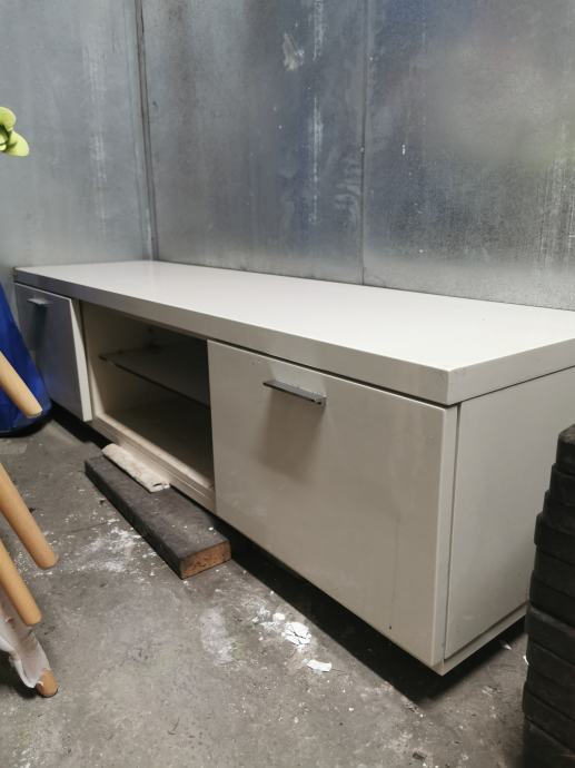 Ima 2 masivne ladice sa stoperima, na sredini su 2 police i otvor za kablove.