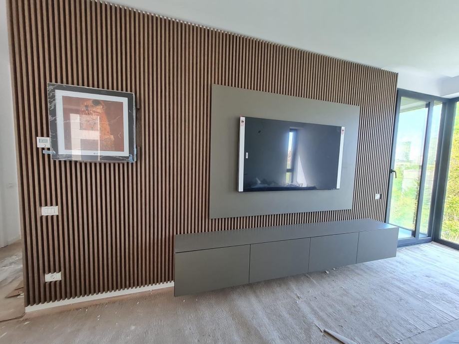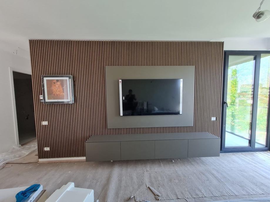TV komoda sa zidnom oblogom izrađena po mijeri