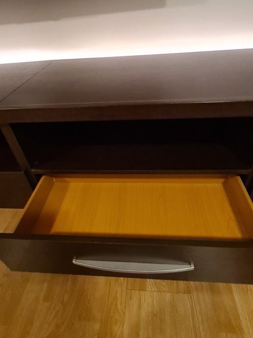 Dvije komode u jako dobrom stanju, uščuvane. Kupljene na Perfecta Dreams prodajnom mjestu. Boja tamnosmeđa (wenge).Ručke na donjim ladicama plastične (srebrne boje). Dimenzije: Visina:48 cm Dubina: 52 cm i Dužina: 120 cm. Prodajemo obje u paru. Postav na slikama (obje). Vlastiti prijevoz. Upiti email porukom: anazilla02@gmail.com