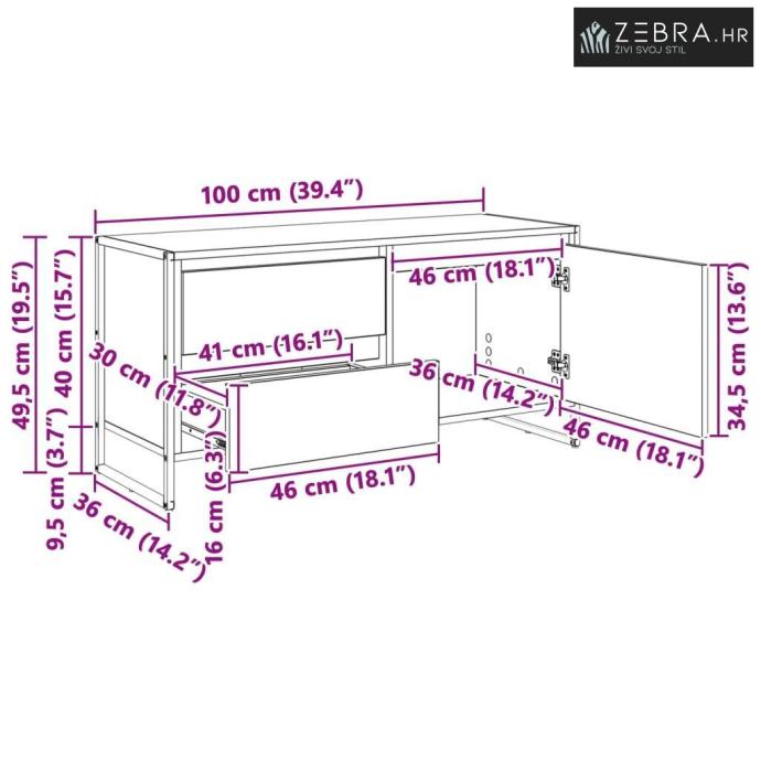Sveukupne dimenzije: 100 x 36 x 49,5 cm (D x Š x V)