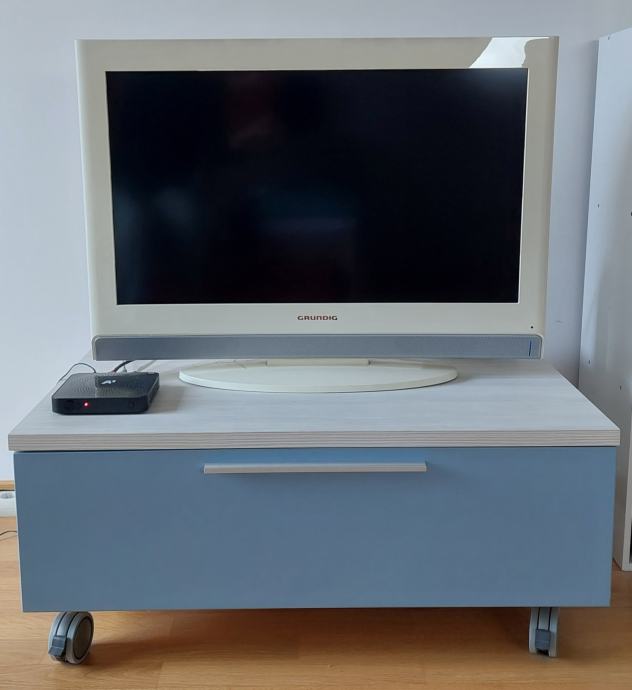 GOTOVO NOVI TV ORMARIĆ/KOMODA/LADIČAR (PRIMA) OD IZBIJELJENOG BORA SAVRŠENO SE UKLAPA U SVAKI PROSTOR - SUPER KOMBINACIJA SIVIH GODOVA SA SIVO-PLAVOM FRONTOM. PRAKTIČNI KOTAČIĆI SA STOPERIMA, DUBOKA I FUNKCIONALNA LADICA SA VODILICAMA I PROSTRAN GORNJI DIO ZA TV, A BEZ RASTAVLJANJA STANE U OSOBNI AUTO (90×60×39).