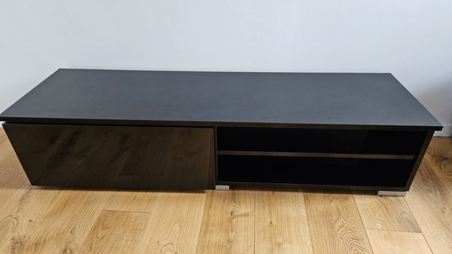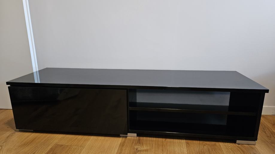 Prodajem TV ormarić dimenzija 40 cm širine, 140 cm duljine i 33 cm visine u crnoj lak boji. Ormarić ima jednu ladicu i jednu otvorenu policu. Nema oštećenja.